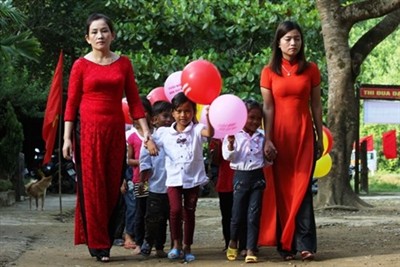 Thứ hai - 07/09/2015 12:12 Sáng ngày 5/9/2015, Quỹ Tấm lòng Việt của Đài Truyền hình Việt Nam phối hợp cùng Công ty cổ phần đầu tư xây dựng FODACON và Sở GD&ĐT tỉnh Quảng Bình tổ chức lễ khai giảng năm học mới và trao tặng phần quà trên 100 triệu đồng trong chương trình "Tiếp sức cùng em đến trường" cho thầy cô giáo và học sinh trường TH&THCS Thượng Hóa (Minh Hóa, Quảng Bình).